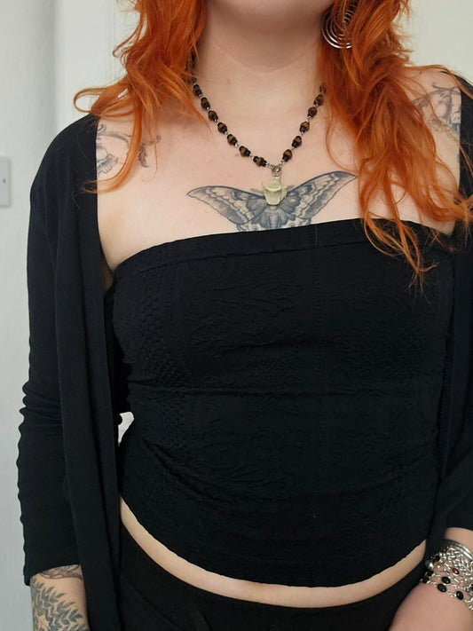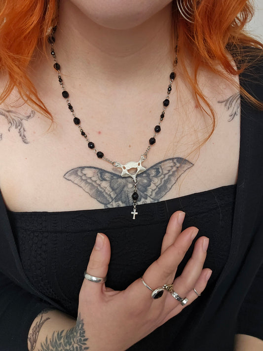 Mini black rosary with vertebrae centrepiece
