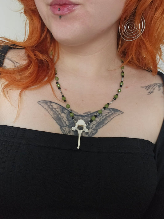 Fox vertebrae & green beaded necklace